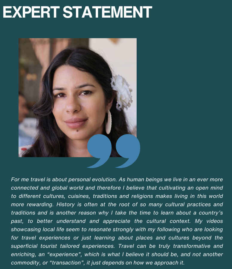 Authentic and engaging travel documentary filmmaker and YouTuber showcasing the local culture of the places she visits.